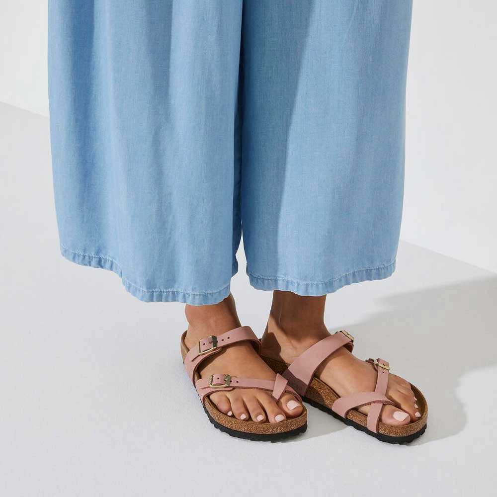 The BIRKENSTOCK Mayari thong sandal stands out with its strappy look and brings together design and comfort. With its additional foam layer, the soft footbed offers extra comfort and pampers feet. Shown in high-quality nubuck leather.