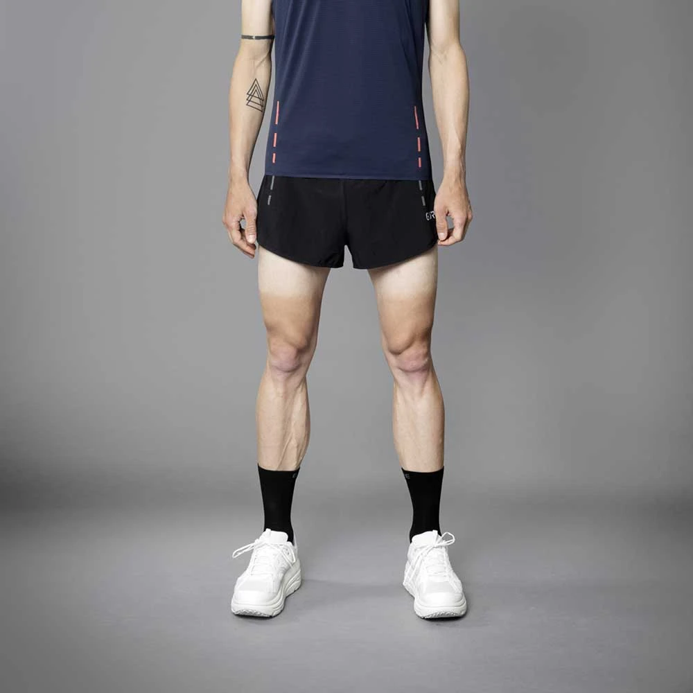 Designed for those who want to run fast. When racing or training you want to feel cool and unrestricted. The four-way stretch of the material allows full movement and unhindered stride length whilst the well ventilated mesh liner helps you to stay dry throughout your run.