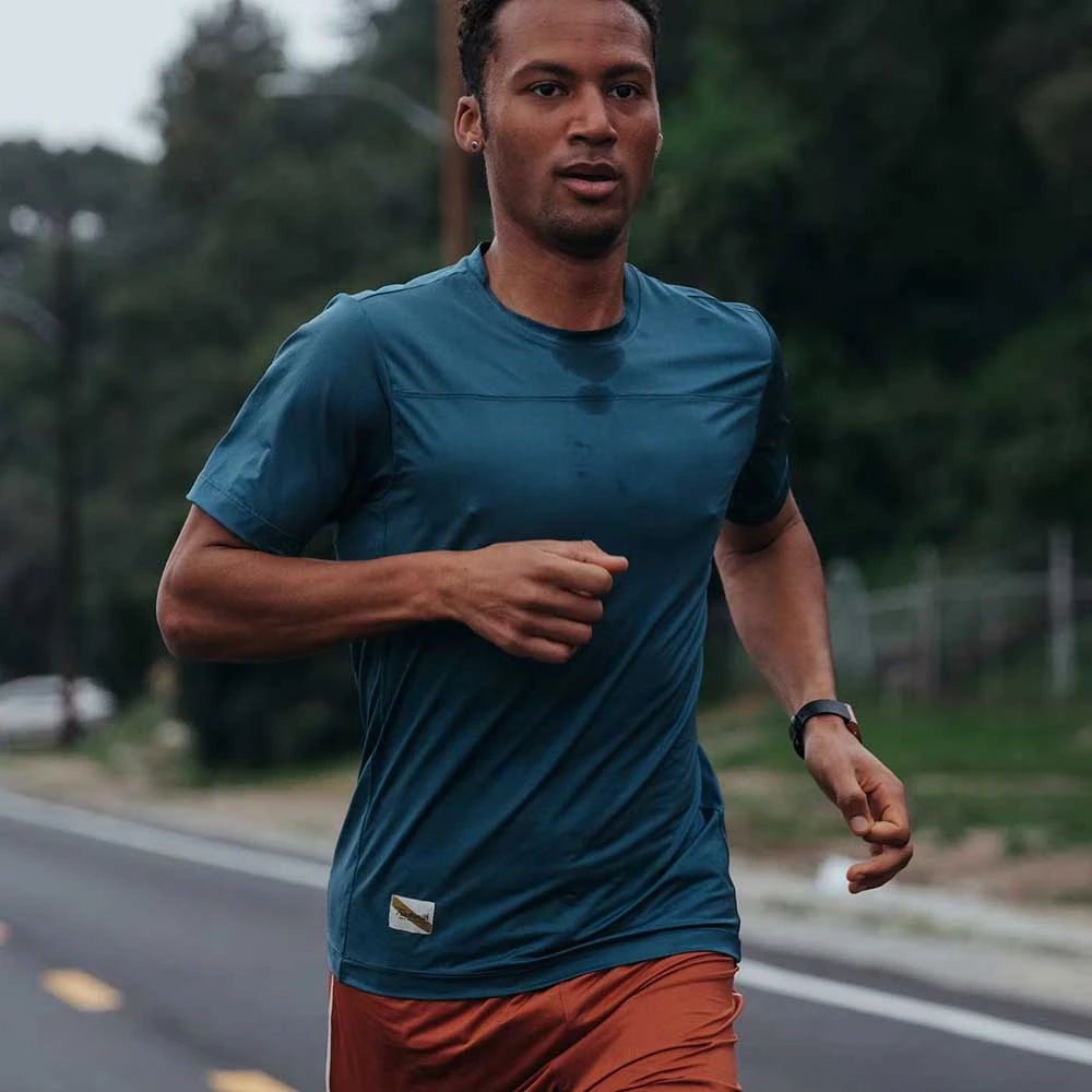 With their low-stakes atmosphere, twilight meets are the kinds of races runners often choose to train through. As such, the Twilight Tee needed to be light enough for race speed, but tough enough to handle workout repeats. The difference is in the details: a reinforced double stitch construction adds durability, while stretch gussets at the sides and an inverted arc back yoke allow freedom of movement.