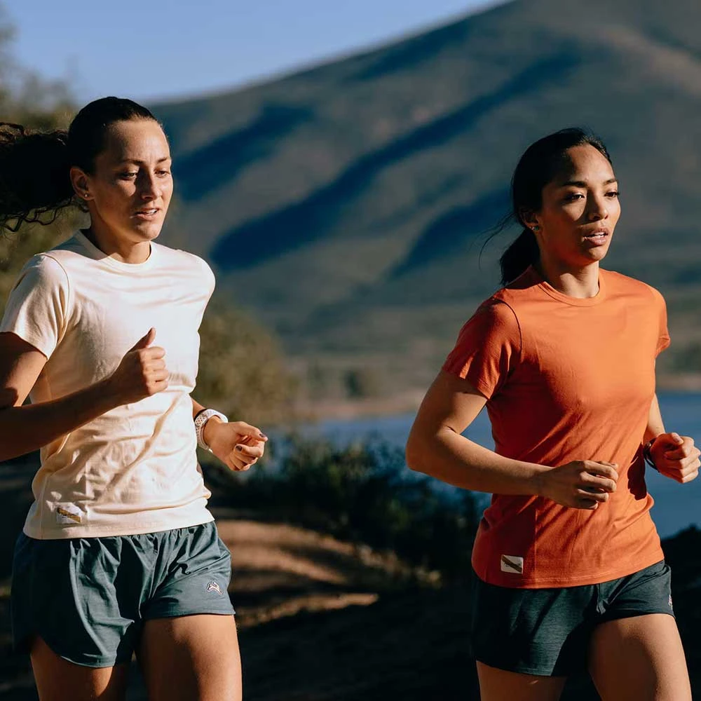 Middle distance runner Kamilah put the new Harrier Tee to the test over a morning workout on a dirt track in Santa Barbara. The workout called for a cutdown fartlek: 2×90 seconds, 2×60, 4×30, 4×15 with equal rest. The verdict? “ I think it may become one of my favorites!” she told us after the workout.