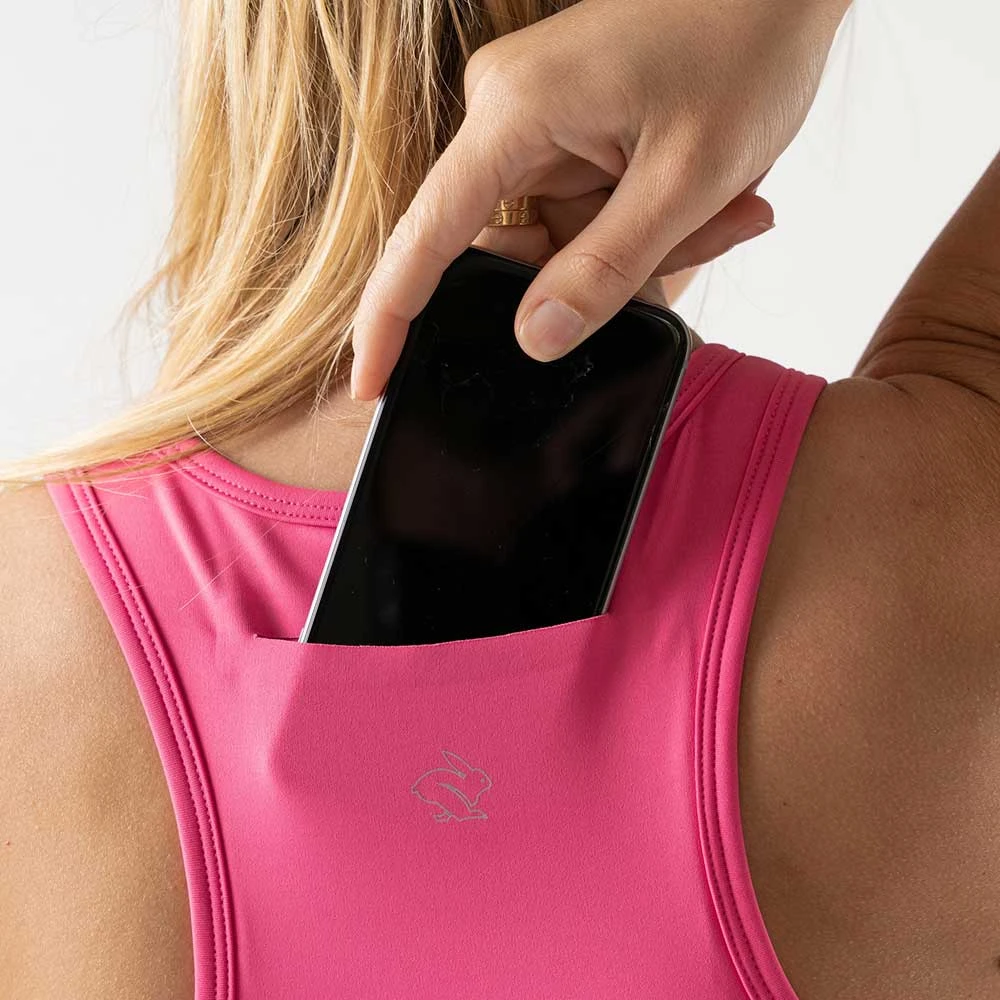 Run with confidence. Our best-selling sports bra minimizes bounce while securing the essentials. Tucked snugly into the laser-cut pocket between your shoulder blades, your phone is easily accessed on the go.